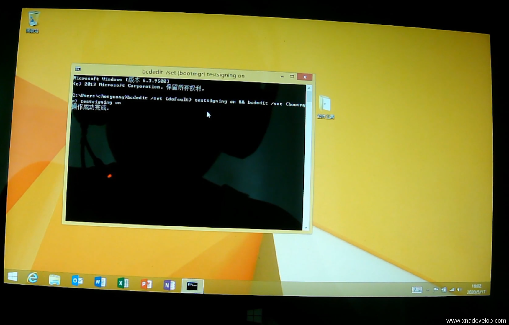 输入【bcdedit /set {default} testsigning on && bcdedit /set {bootmgr} testsigning on】回车