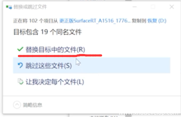 打开解压后的目录,复制所有文件到U盘的根目录,提示重复文件点击【替换目标中的文件】