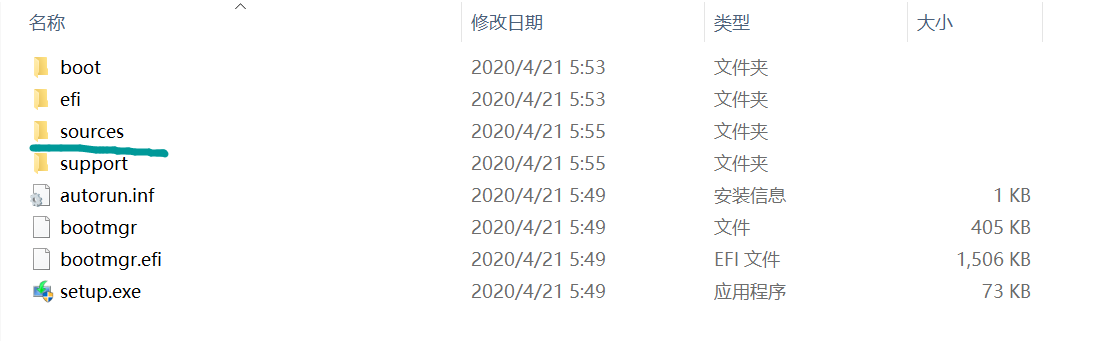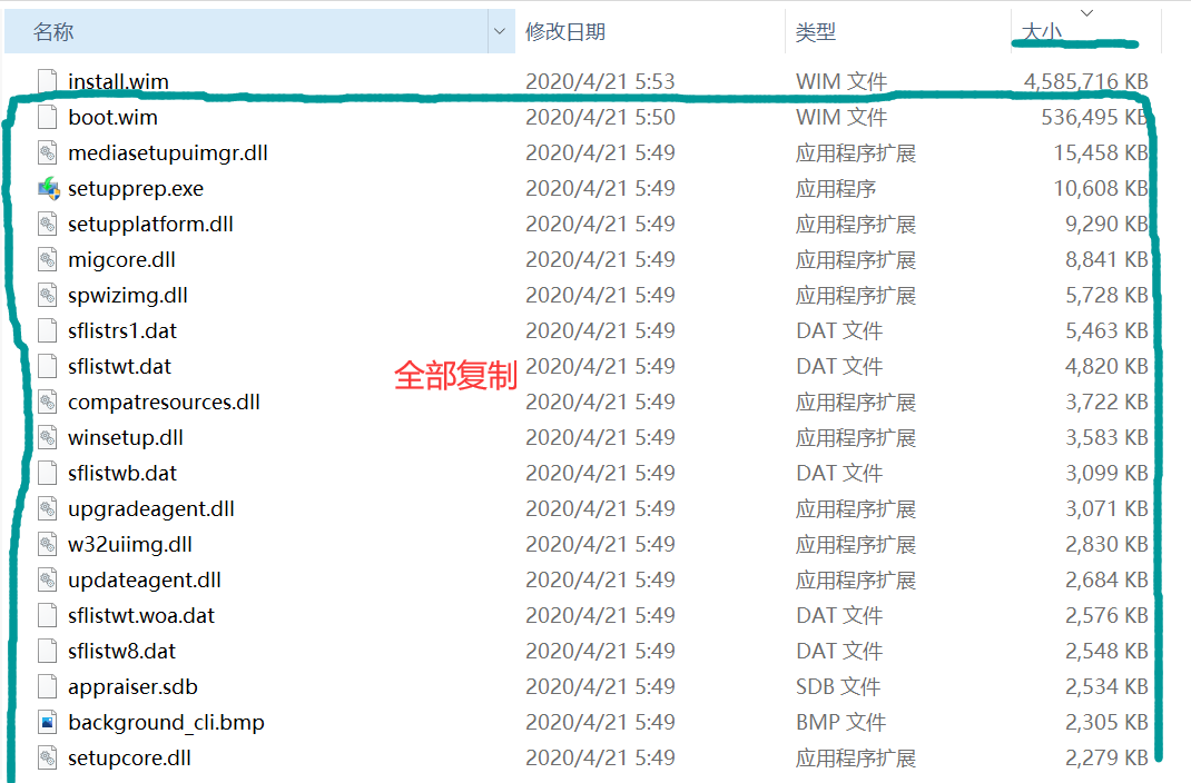 d.点击一下按大小排序,除了install.wim,全部复制!