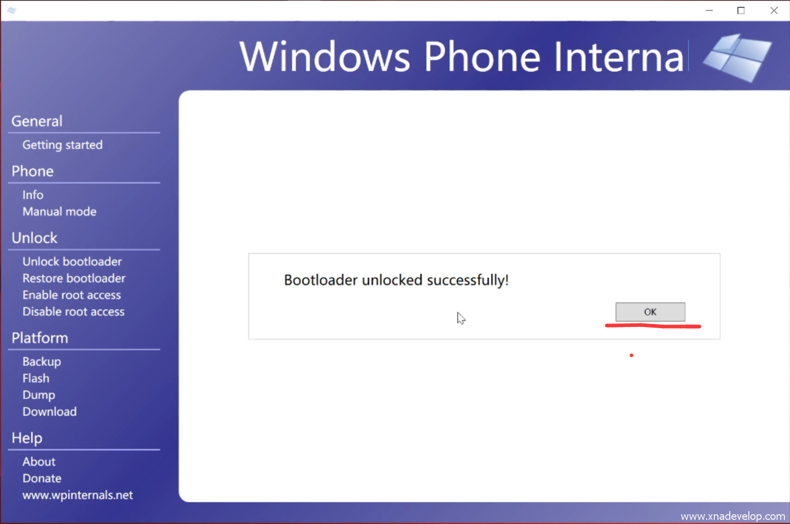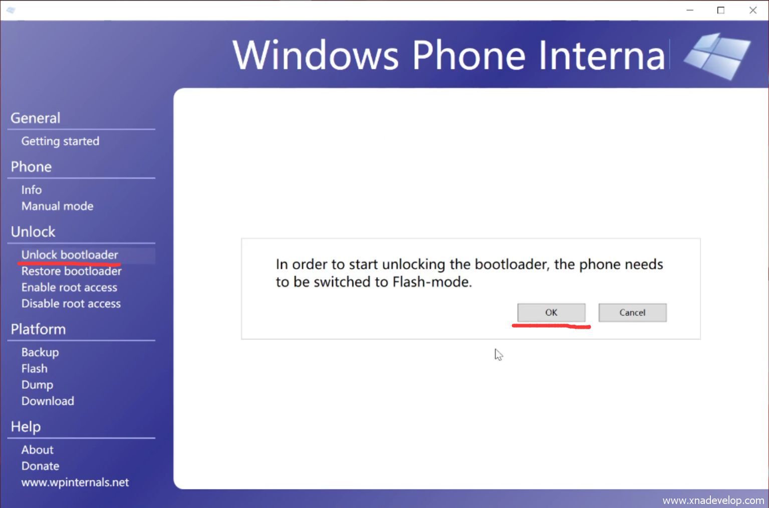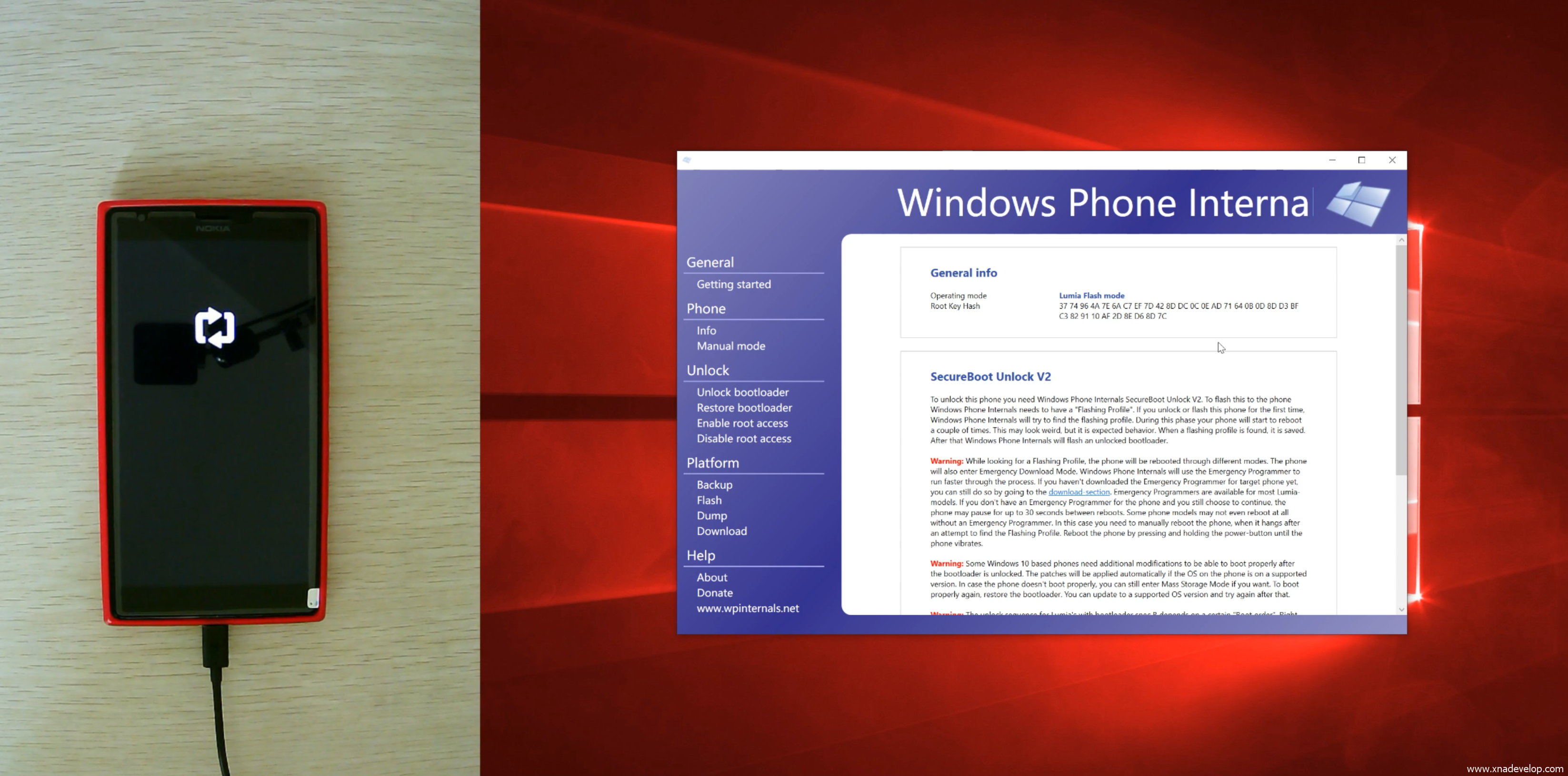 手机重启后进入flash mode,WPInterals窗口往下拉。
