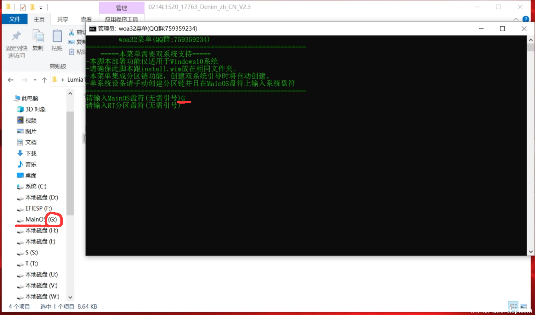 查看电脑上的磁盘,看看MainOS的盘符,我这里是G盘,输入G,【回车】