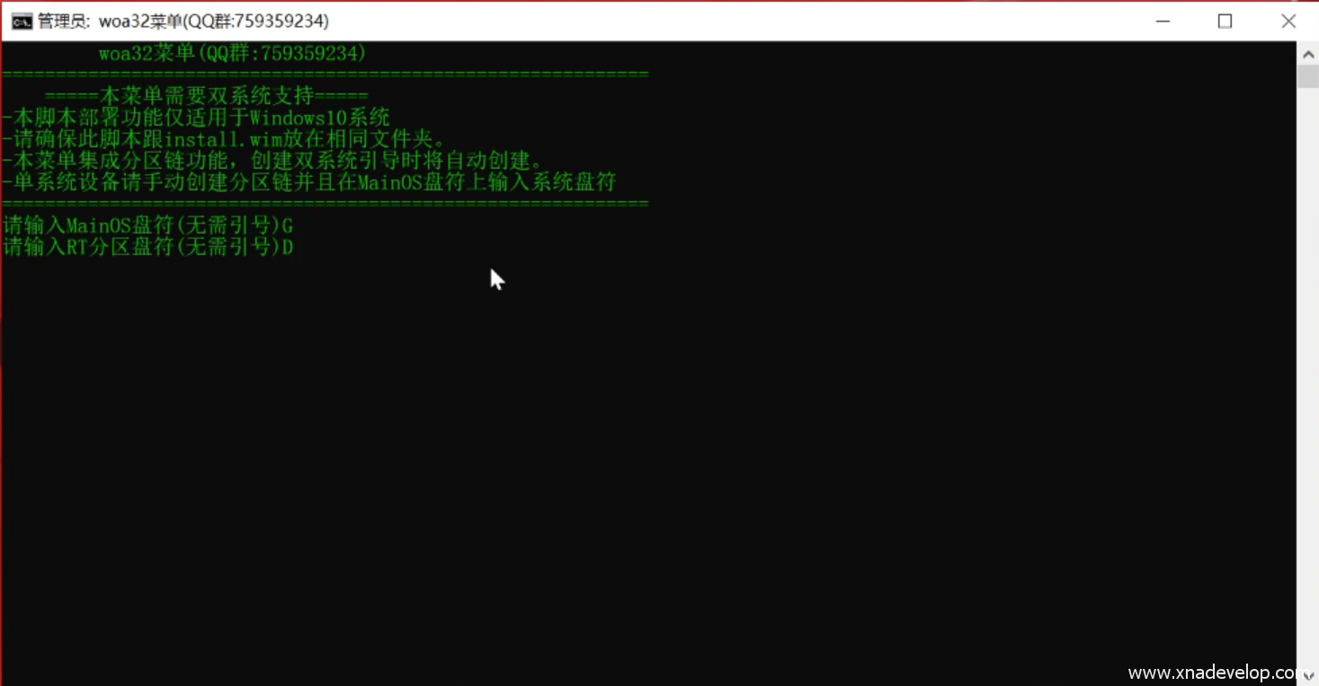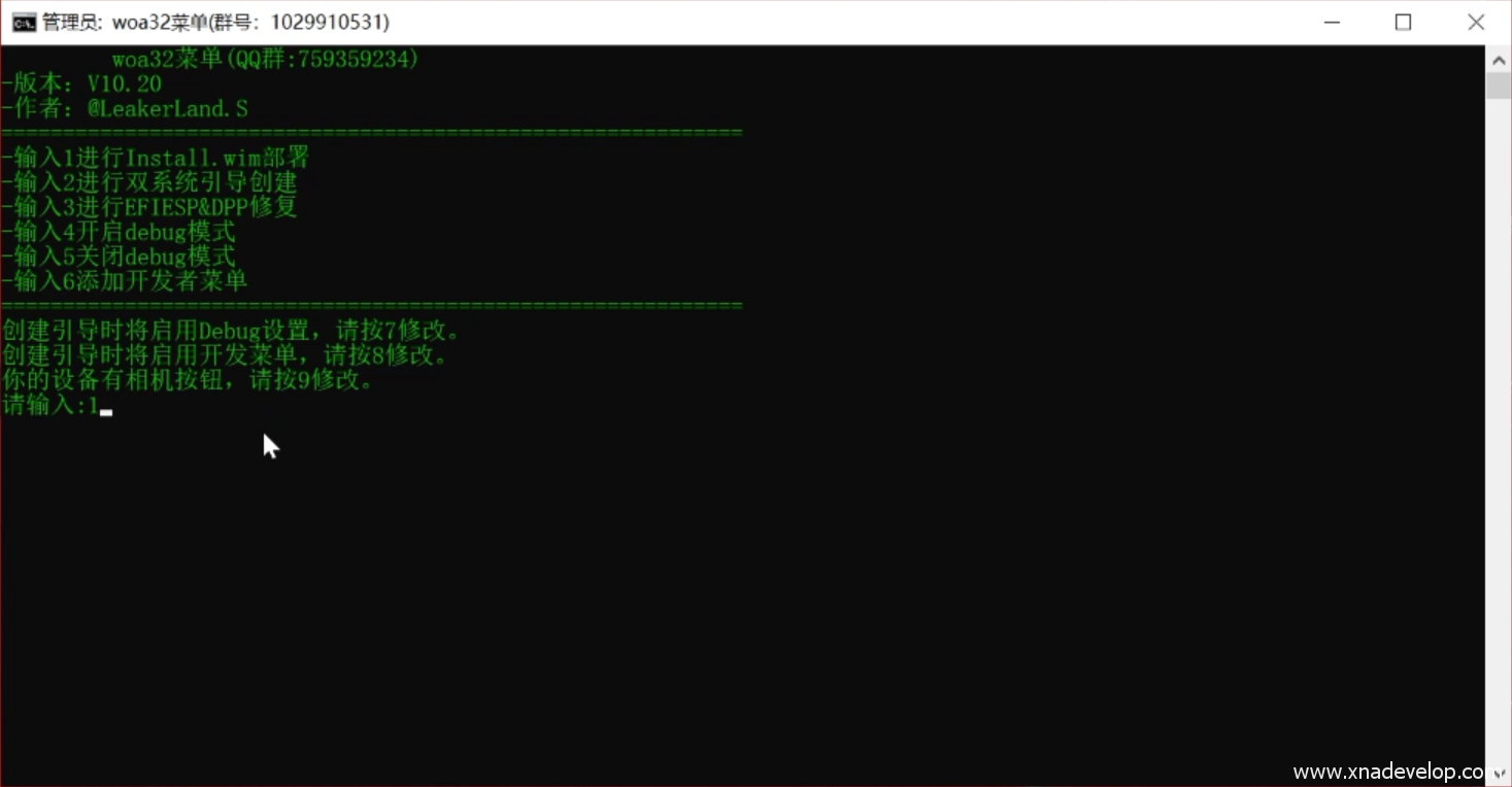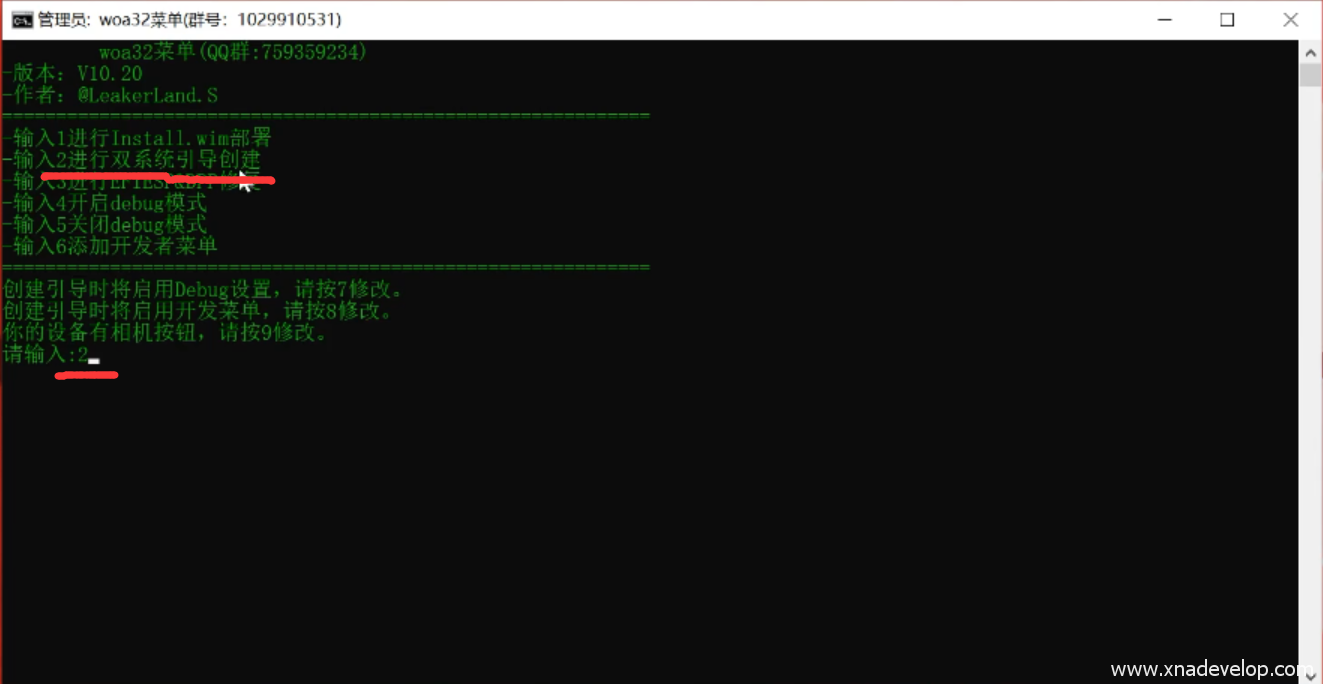 关闭计算机管理,回到【WOA安装脚本.bat】,输入【2】,回车