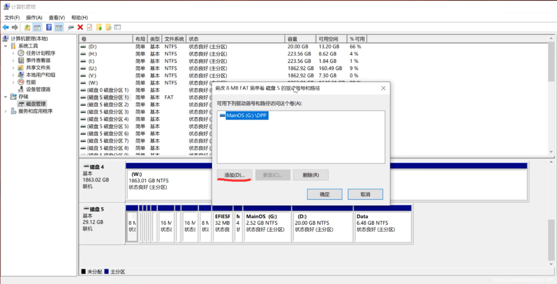 点击【完成】,这时候你电脑上会多出一个20G的磁盘,记住它的盘符,我这里是D盘