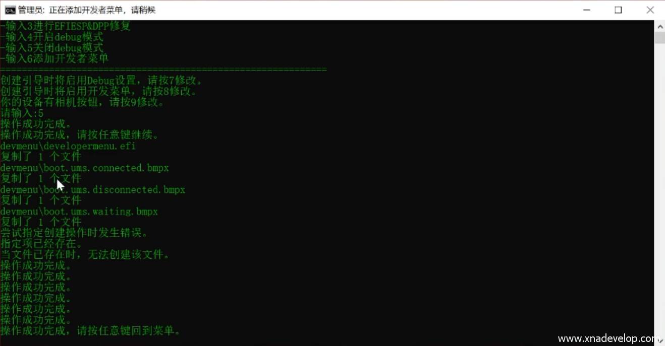 接着,输入【5】【回车】,关闭debug模式。注意:如果不关闭进入Windows10系统会变得非常慢,并且进入系统后手机发烫会导致不停重启。