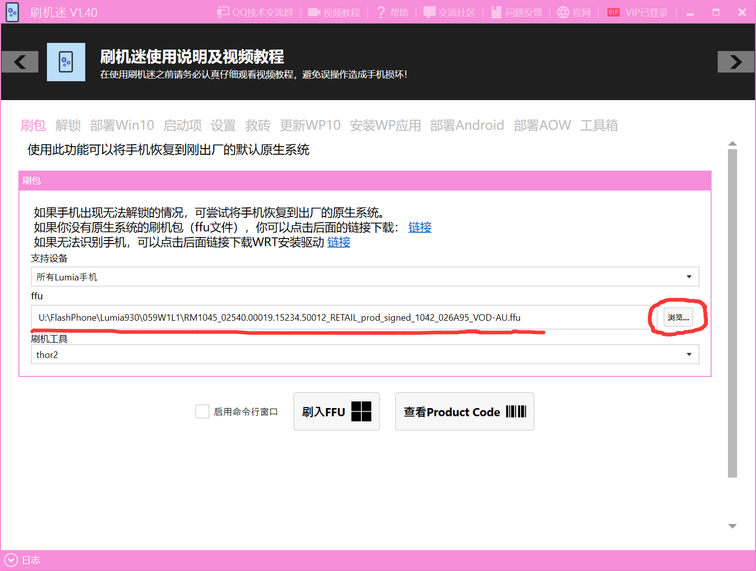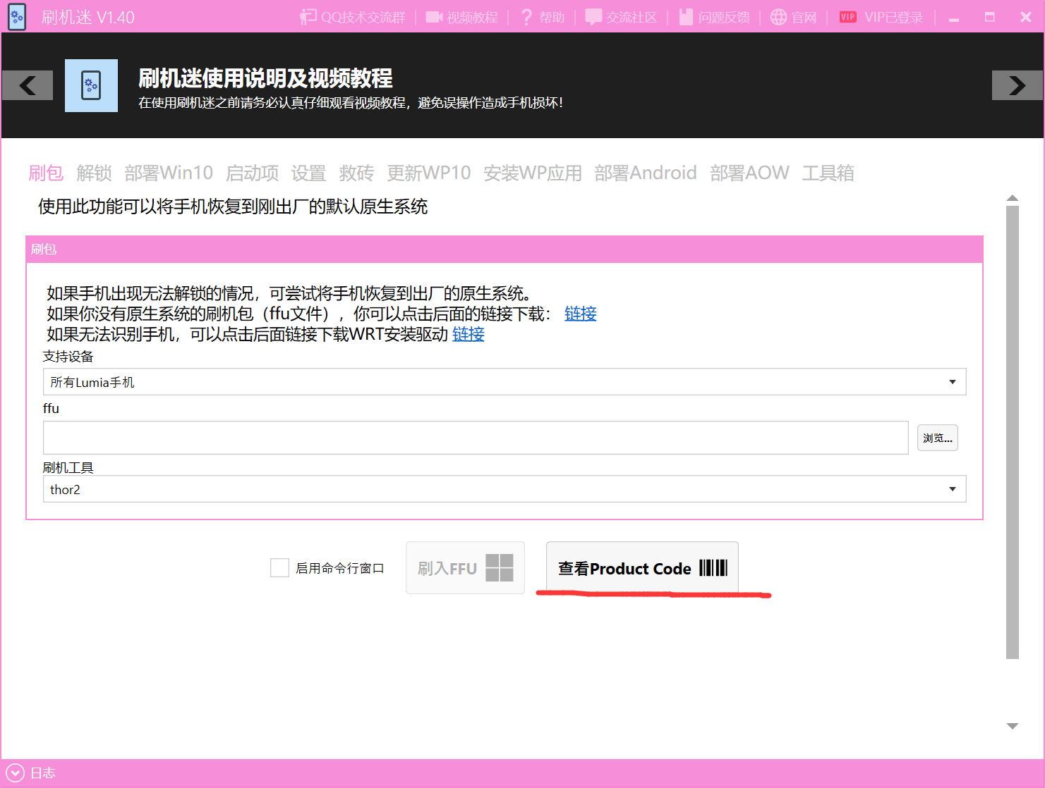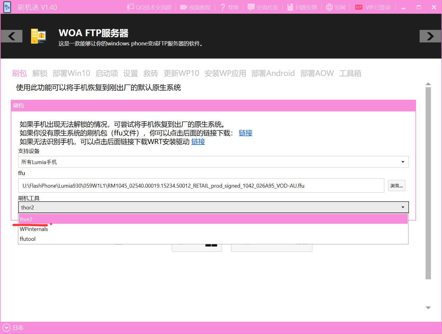 刷机迷提供三种常用ffu刷入工具,thor2,WPInternals,ffutool。这里推荐选择thor2,这是一个微软官方的刷入工具,一般不会造成手机损坏!