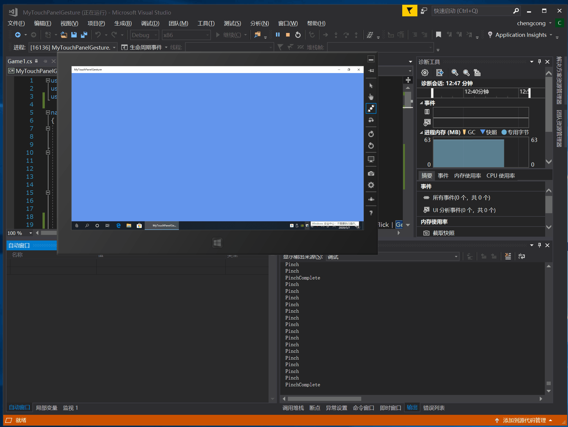 if (gesture.GestureType == Microsoft.Xna.Framework.Input.Touch.GestureType.Pinch)//判读该手势的类型是否左右捏合